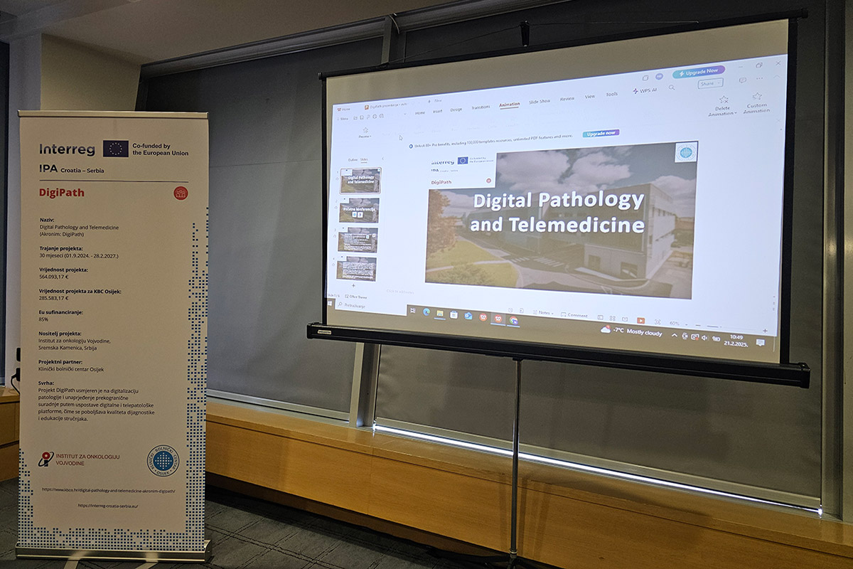 Osijek, 21. februar 2025. – U Hotelu Osijek u Hrvatskoj održana je otvarajuća konferencija projekta „Digitalna patologija i telemedicina – DigiPath“, koji predstavlja značajan iskorak u digitalizaciji patologije i unapređenju prekogranične saradnje između Republike Hrvatske i Republike Srbije. Vodeći partner projekta je Institut za onkologiju Vojvodine iz Sremske Kamenice, dok je partner na projektu Klinički bolnički centar Osijek.